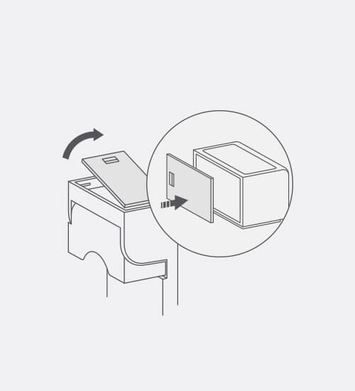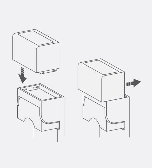 1. Свалете горния капак на стойката за зареждане, която се доставя с прахосмукачката.