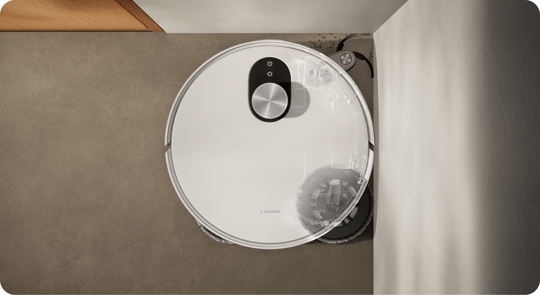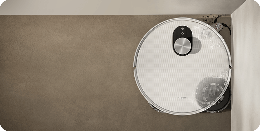 5. Минимум 0 mm почистване на ръбовете с моп: Тествано с Corners & ръбове фокусът е включен и след това се движи по права линия по протежение на стена. Минималното разстояние от прахосмукачката-робот до стената е 0 mm. Данни, тествани от Xiaomi Internal Labs. Действителните резултати може да варират в зависимост от сценариите на употреба.