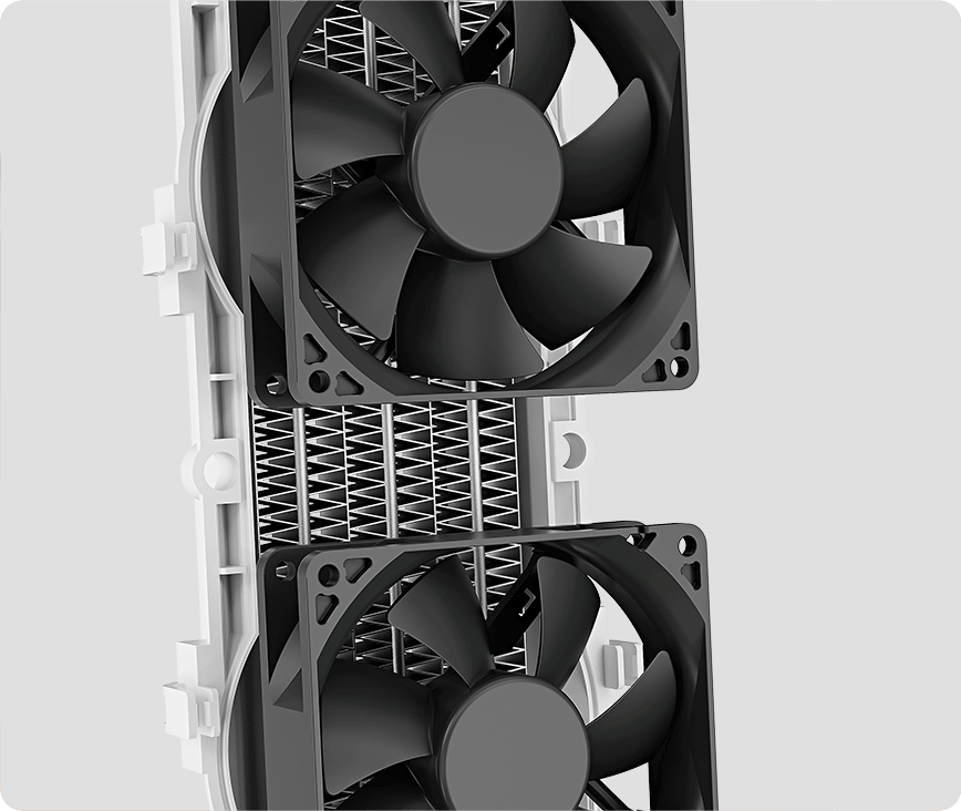 Оставете топлината да обхване цялото ви тяло. Аксиалният вентилатор ще ви обгърне в топлина, благодарение на 70° широкоъгълно предно подаване на въздух.