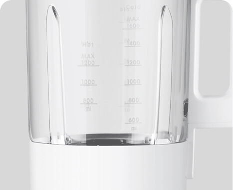 Смесете вашия избор от топли или студени напитки - до 1200 мл топли напитки или 1600 мл студени напитки наведнъж. Лесно приготвяйте здравословни смутита, пресни сокове или натрошен лед.*