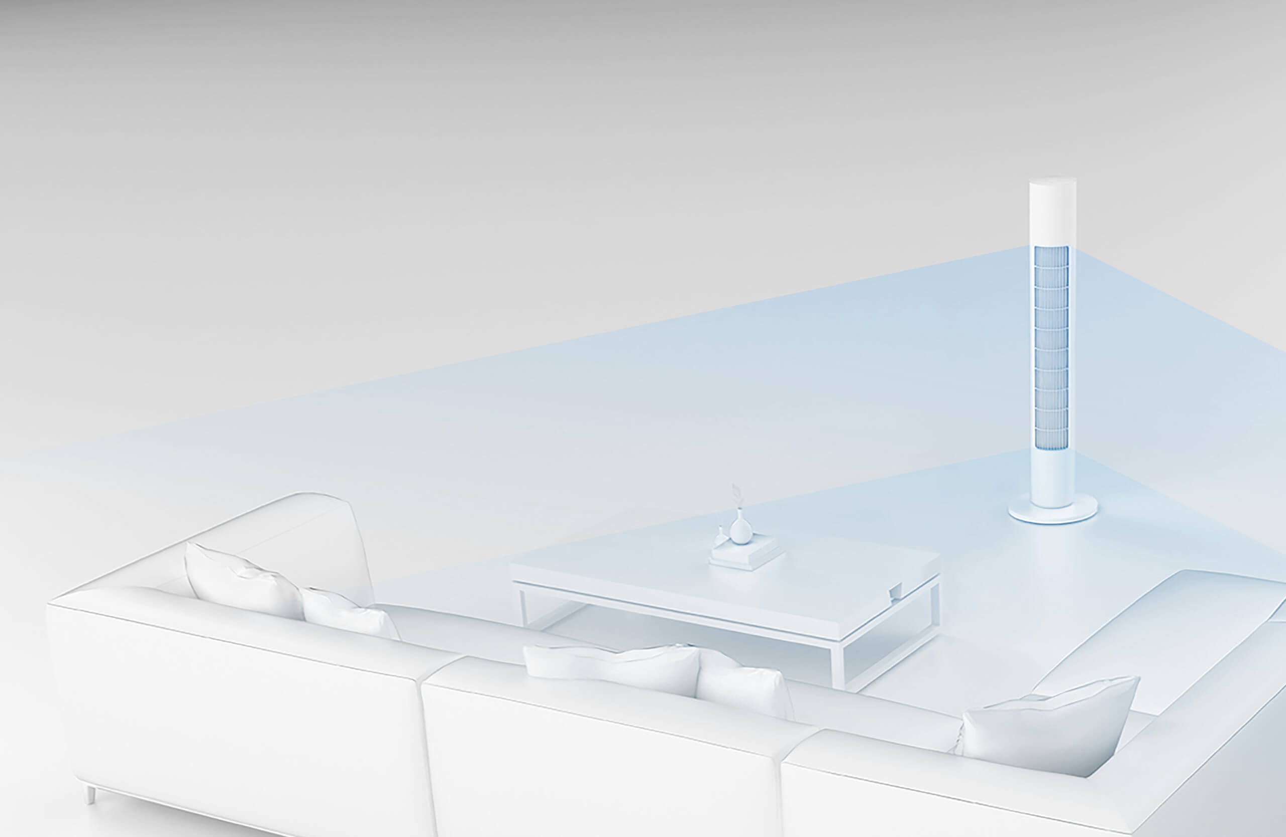 Силният въздушен поток бързо ще разсее летните жеги. Той използва дизайн на вихров въздуховод с напречен поток, със стабилен и удобен въртящ се изход на въздуховод. Супер дългият въздуховод създава силен бриз с максимален въздушен поток от 541 m³/h*, който бързо прогонва летните горещини.