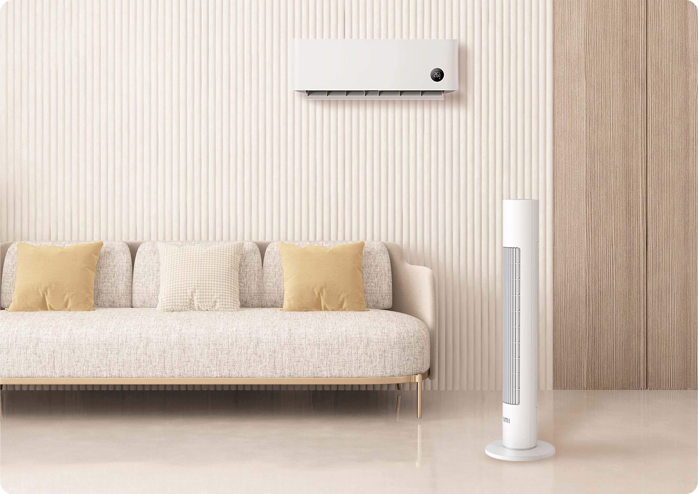 Бързо охлаждане и ускорен въздушен поток. С помощта на приложението Mi Home можете да регулирате ъглите от 30°, 60°, 90°, 120°, 150° и да охлаждате удобно стая за цялото семейство.-