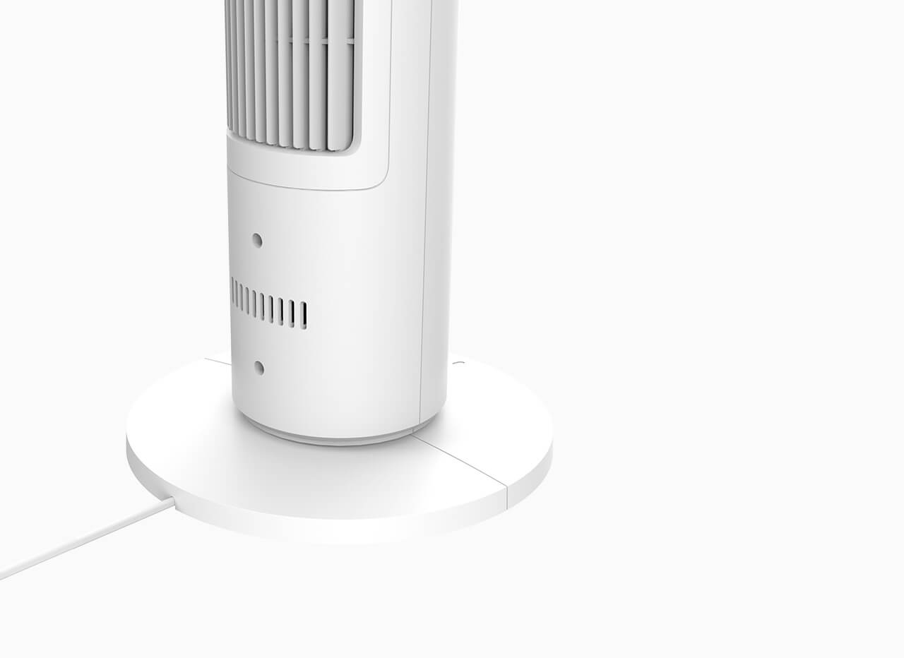 Основата е само малко по-голяма от лист хартия А4. Цилиндричното тяло на вентилатора му придава тънък и елегантен външен вид и лесно ще се впише във всяка домашна среда.