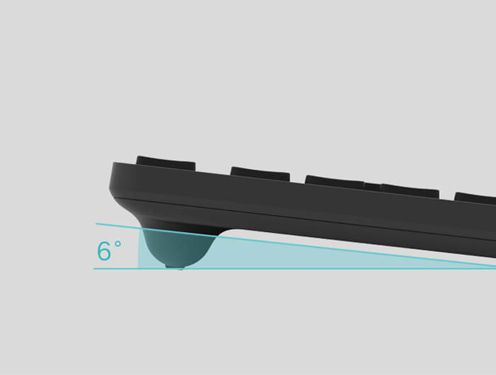 Оптималният ъгъл на клавиатуратаЪгълът на наклон от 6° се адаптира към естествената позиция на ръцете и китките за комфорт и ергономична работа. -