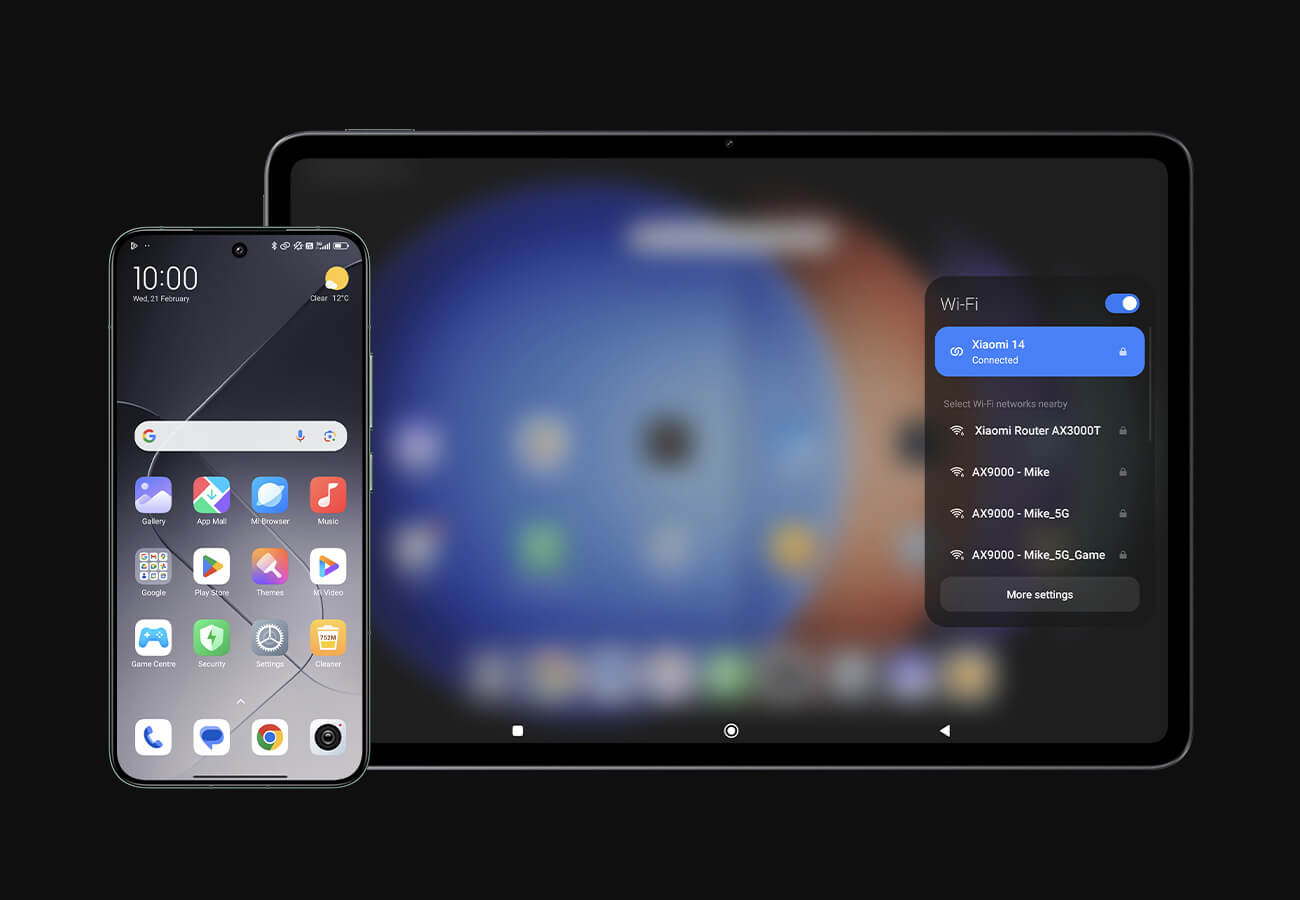 *Устройствата трябва да бъдат свързани към един и същ акаунт в Xiaomi. И таблетът, и телефонът трябва да имат активирани WLAN и Bluetooth. Функцията за взаимно свързване на Xiaomi трябва да бъде отворена предварително както на таблета, така и на телефона.
